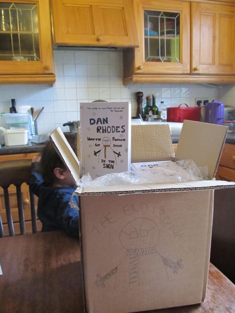 Three months ago today I finished writing ‘When the Professor Got Stuck in the Snow’. Since then I’ve printed it, published it and sold the lot. That’s a photo of the final consignment to leave the kitchen table – twenty copies on their way to Foyles on Charing Cross Road in London. They should be back on sale there early next week. There’s a list of other possible stockists here.