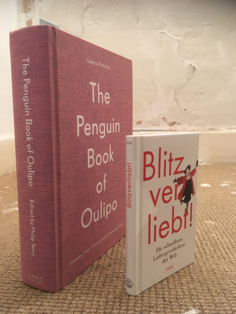In other news, since I was last here I’ve had some oldies appear in anthologies. A few stories from Anthropology made it into the Penguin Book of Oulipo (Ed. Philip Terry) – a collection of work from the French experimental movement, and (as in my case) writers in its shadow. I’m in some amazing company, and it’s well worth tracking down a copy. Checking now, I see it’s out in paperback – hopefully Penguin will send me my contributor’s copy for the trophy cabinet. It’ll give them something to spend their furlough money on (for crying out loud). A couple of stories from Marry Me made it into a German anthology too. It’s little morale-boosters like this that keep us going. Both of them almost didn’t happen, thanks to the usual suspects. I’ll tell the full story in episodes 548-557 of the inevitable 1000-episode podcast about my publishing travails.