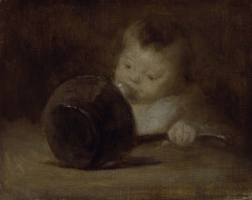 So there we were. Paris. This was 2010, before smartphones had been invented (well, in our house, anyway) and we’d forgotten the camera, so we bought a disposable one – the viewfinder of which, we subsequently discovered, was aligned in such a way as to make sure we were only taking pictures of each other from the knees down. The first thing we did was get lost on the way to the hotel. Then, once we’d found it and dumped our bags, we got lost again (which was fine – you don’t really know a city until you’ve repeatedly got lost in it). At one point we found ourselves on Rue Eugène Carrière, named after the painter. This was a cause of jubilation, because a few years earlier we’d found ourselves transfixed by a tiny picture of his, Enfant avec une casserole, at Aberdeen Art Gallery, and an oversized canvas of it hung on our wall at home (it still does). Suddenly, by mistake, we were lost on a road named after him.