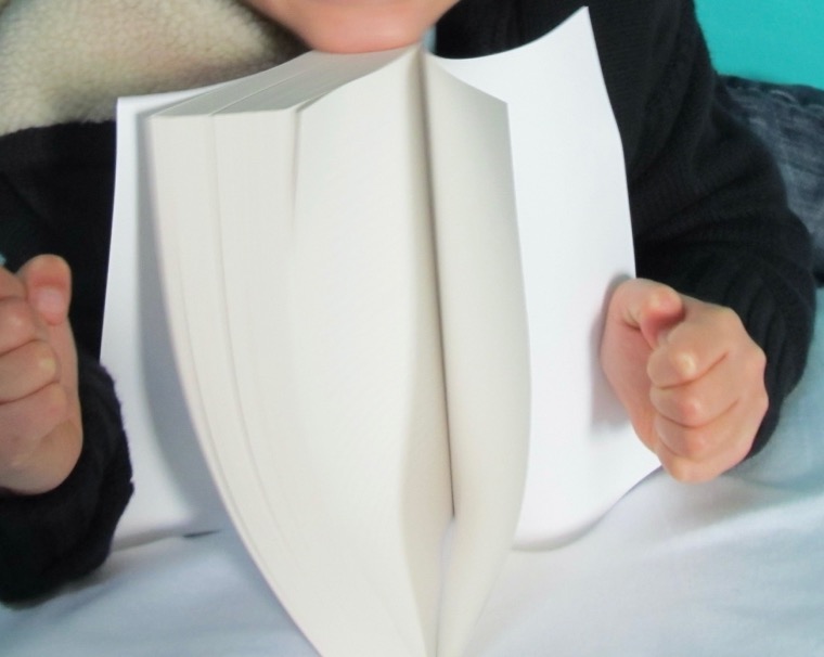 Prior to publication, a proof edition of the book had been circulated. If you’ve ever worked in the trade you’ll be familiar with these – early copies, not meant for sale, that are printed on poor quality paper. There’s a move towards calling them ‘galleys’, but I’m too old to change. Either way, the idea is to get friendly booksellers, journos, etc., on side prior to publication by sending them advance copies, at the same time producing something that looks a bit blah, and won’t ever be confused with the finished version. What arrived in the post – the second printing of This is Life – was on exactly the same low-grade paper as the proof had been. I put them side by side, and apart from the bar code there was nothing to distinguish them. They were essentially selling a proof as though it were the finished product, which is 100% not cool. The spectacular flaps were gone, the inside covers were bare white, the ink was faint. Because of the cheap, thin paper, the book was noticeably less substantial than it had been. There’s almost a centimetre’s difference between the two versions.