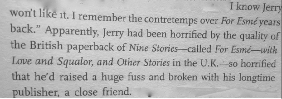 Misgivings that had been pecking away for a long time reached critical mass, and all benefit of the doubt drained away. From that point on it was all about the exit strategy. Seriously, publishers – you can either have a good relationship with your authors, or you can deliberately bollocks up their editions. It’s one or the other. J.D. Salinger knew the score (from Joanna Rakoff’s ‘My Salinger Year’):