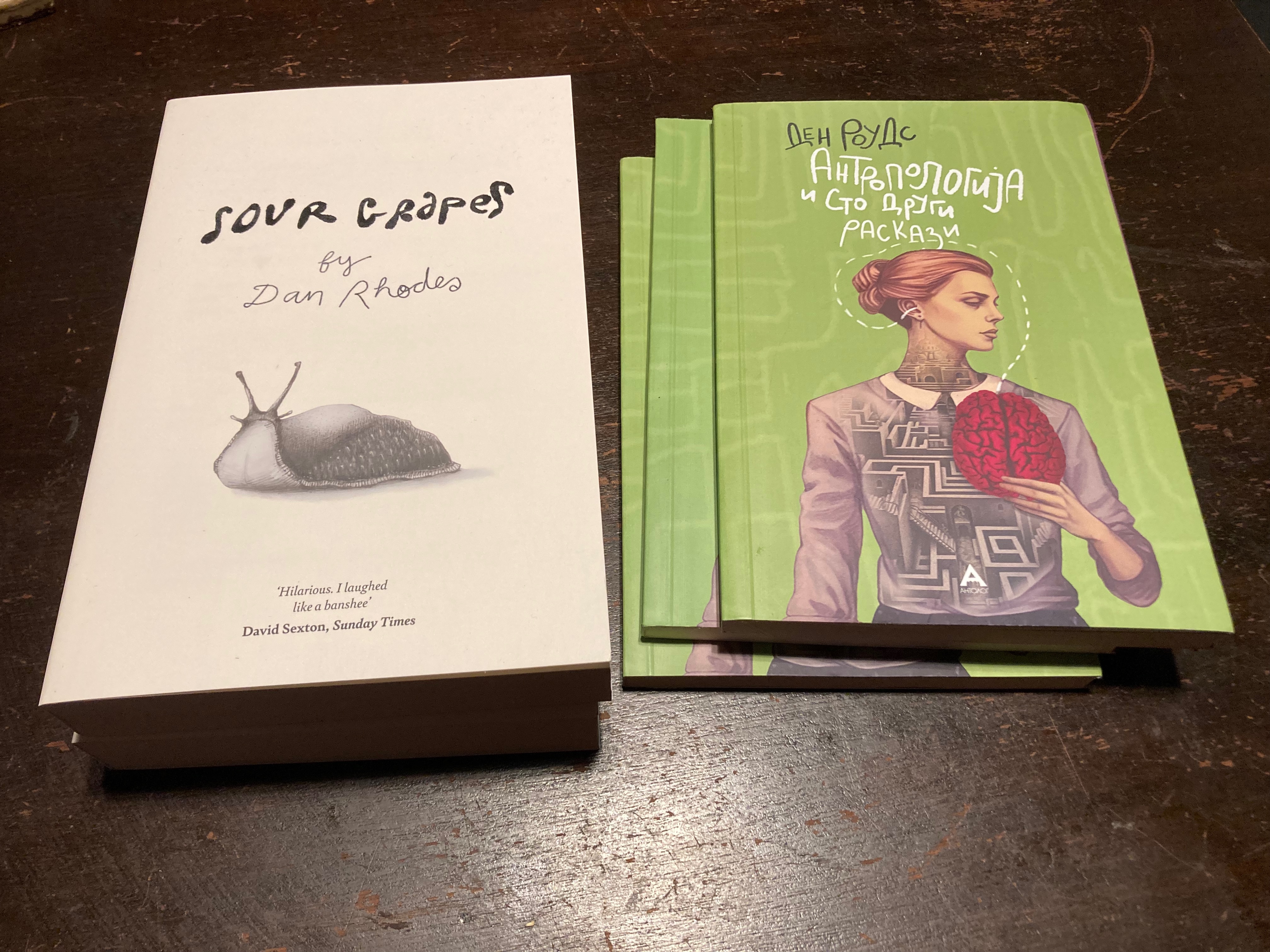 And what’s the green one on the right? Give yourself a prize if you identified it as being the North Macedonian edition of Anthropology. Needless to say I’m very chuffed about this – it’s my first time ever in Macedonian, and the first time I’ve sorted out a foreign deal by myself. It’s published by Antolog Books, and they’ve been a dream to work with. I would love to give the translator a shout-out, but to be honest I can’t work out what they’re called. I’ll get back to you on that. That’s the thing about translations. I always pass my details on to the translator – sometimes you never hear a word from them, and sometimes you get a good amount of back-and-forth. My Finnish translator even turned up on my doorstep with a bundle of Moomins memorabilia. Nice.